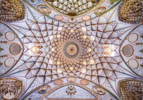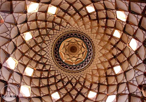 The said premises is located in Kashan and was constructed during the years 1292-1310 AH. by 'Haj Seyed Jaffar Natanzi' a merchant who conducted business in Borujerd and Kashan as well. He constructed this house in order to evade religious levies. The entrance to the premises is from an octagonal vestibule and an area utilized by pageboys adorned with a number of multilateral crescents and skylights in the ceiling. Then a long corridor leads to the northern facade of the building. Near the entrance is a five-door chamber with intricate plasterwork. This opens out on a large and roof less porch, capturing the warmth of the sun, and transferring the same to the small symmetrical chambers on either side of this porch. In the northeastern portion of the structure are the kitchen quarters, arranged with shelves, and a special area to provide space for china and other utilities. Whereas in the western and eastern sections are chambers and covered porches. Opposite which is a courtyard and a stairway connecting the main premises to the basement. The basement covers a vast area and is tastefully arranged with wide wall cupboards with carved and lattice worked wooden doors. On either side of the building is the main or entrance staircase leading to the southern part of the structure. Here there is a large porch with a high ceiling giving way to an entertainment hall. Behind which, on a lower level is an octagonal area with a pool or the 'hauz khaneh'. The same has a domed shaped roof and beautiful skylights. Here the ceiling is vaulted and worked with tiles in harmonious colors. On the walls, portraits of the Qajar sovereigns can be noted, with their guards in formal European apparel. This building is also equipped with cellars that are cool and pleasant for use in the heat of summer. Materials used in the construction of this structure are, stone, brick, sun baked bricks and a composition of clay, straw and mortar.